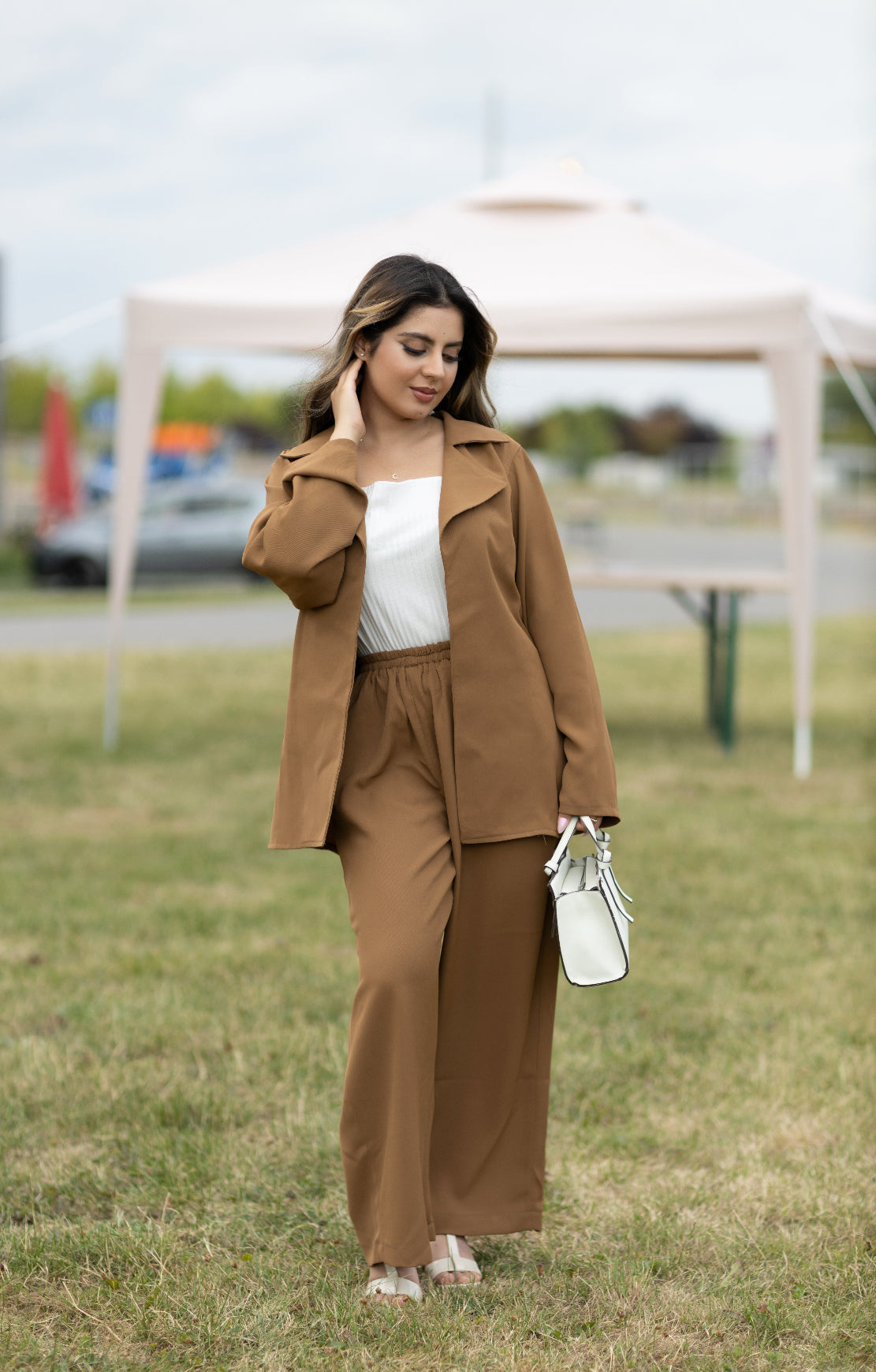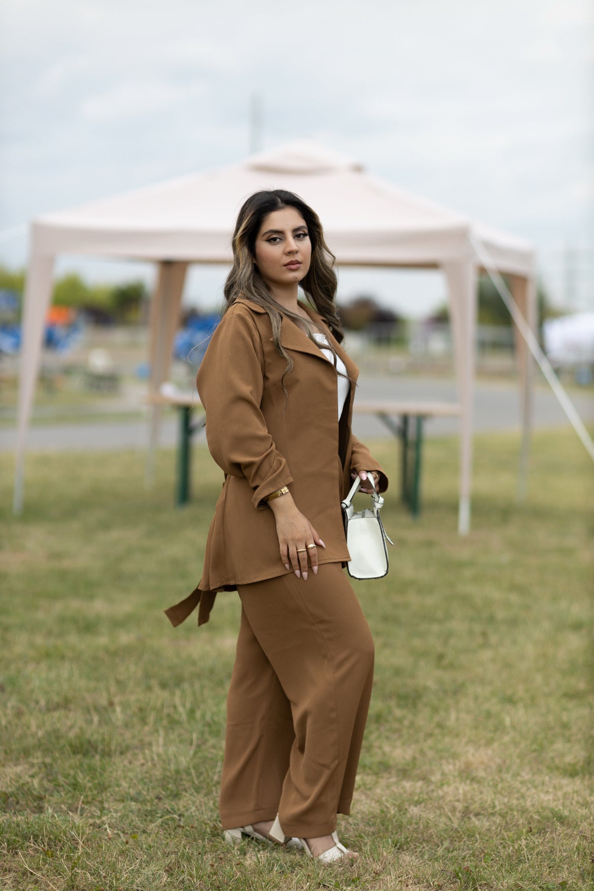 Zweiteiliges Damen-Set – Karamellbraun mit Gürtel